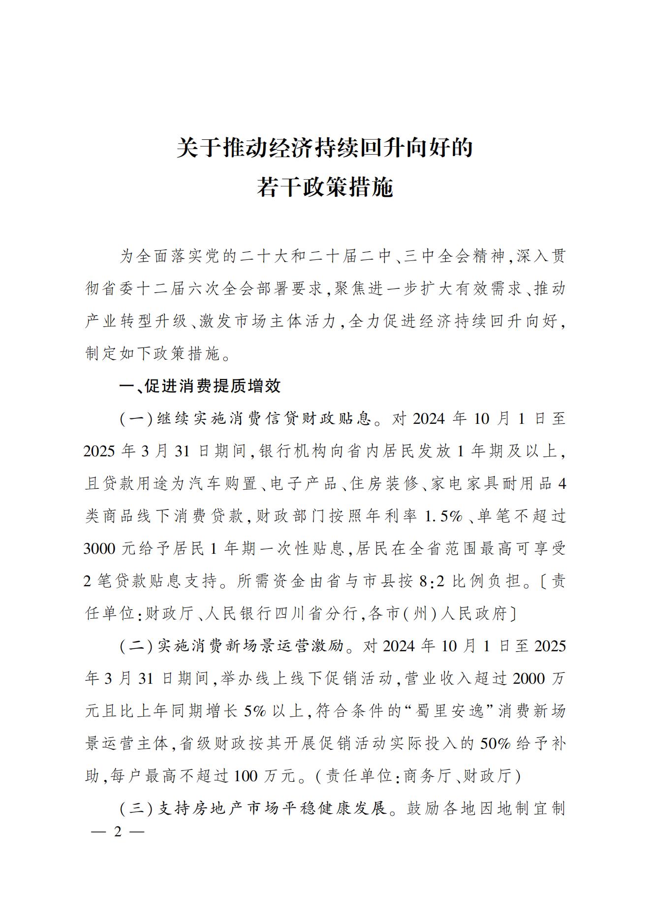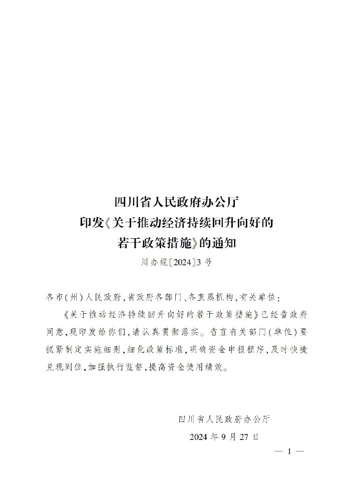 四川省人民政府办公厅印发《关于推动经济持续回升向好的若干政策措施》的通知