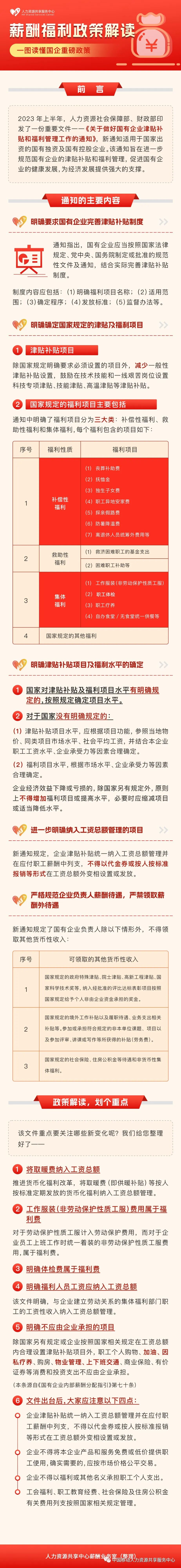 2023年2月,人力资源社会保障部及财政部联合发布《关于做好国有企业津贴补贴和福利管理工作的通知》,另于5月印发了《国有企业内部薪酬分配指引》,继国有企业工资改革后,对于国有企业津贴补贴和福利管理进行了进一步规范,我们整理了一图读懂对该通知的主要内容进行分析和解读,全文正本附后。帮您清晰掌握政策,一图读懂来啦
