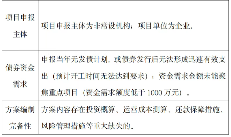 注意:不在申报范围内,或打捆项目涵盖其他内容较多的项目;没有收益,或收益较低的项目;不支持PPP项目;乡村污水垃圾治理项目不支持前置要件不齐项目,包括用地、选址、能评、环评、审批文件。