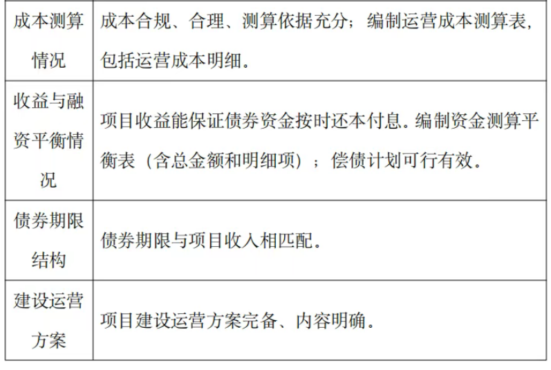 对项目收入进行合理预测,一是项目预期收入与建设内容密切匹配;二是收入预测类型合理,收入实现具有可实现性;三是收入预测取值有国家标准、行业标准、地区标准的、或有市场询价材料支撑的、或有以往年度同性质项目运营收入作支撑;四是项目收入测算有计算构成,有收入测算明细。
