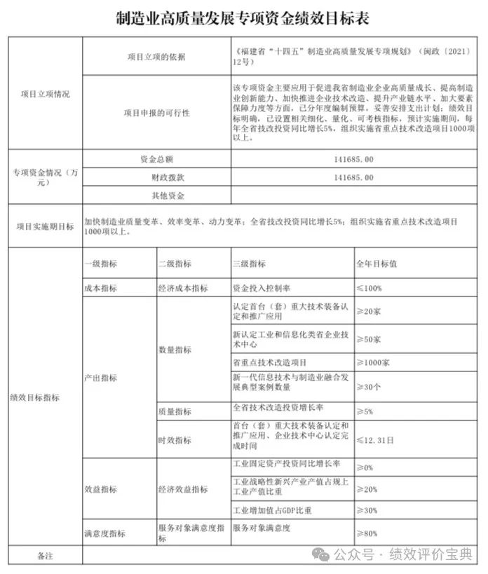 (1)预期产出。包括提供的公共产品和服务的数量目标、质量目标、时效目标、成本目标等。